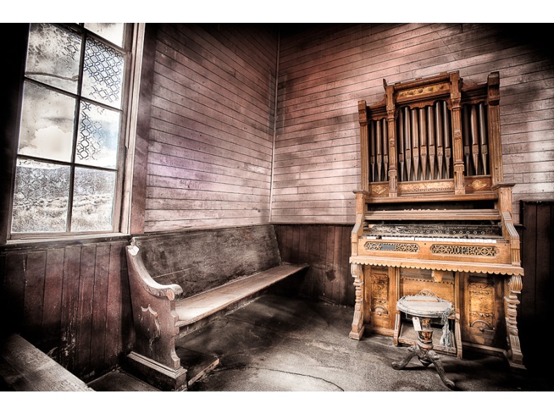 Tags: Bodie, church, bench, pipe organ, mining, gold, silver, ghost town