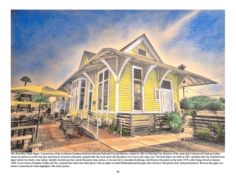 This is my second edition of my Encinitas Coffee Table Book. This 12.5 inch wide by 9.5 inch tall book contains all my hand colored images of four communities within Encinitas, California (Cardiff-by-the-Sea, Historic Encinitas, Olivenhain and Leucadia). 112 pages. Hardcover.