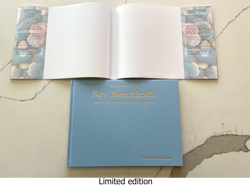The limited edition book has a teal colored cloth cover with gold-colored inlay lettering and jacket. It is limited to 100 copies only. Numbered and signed by me on the title page. Content for the open edition and limited edition versions is the same.