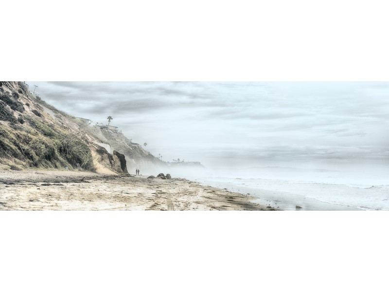 I love taking wide panos with my long lenses (180mm and up): this was taken on a foggy morning at Beacons Beach in Leucadia, California.