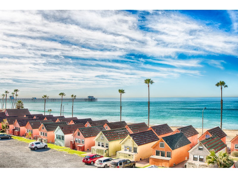 These cute little houses are called Robert’s Cottages and are located just north of the Oceanside Pier along The Strand North. They were built in the late 1920’s and can be rented for vacation stays. The front houses all have the same colors, but the ones at the back are colored differently.