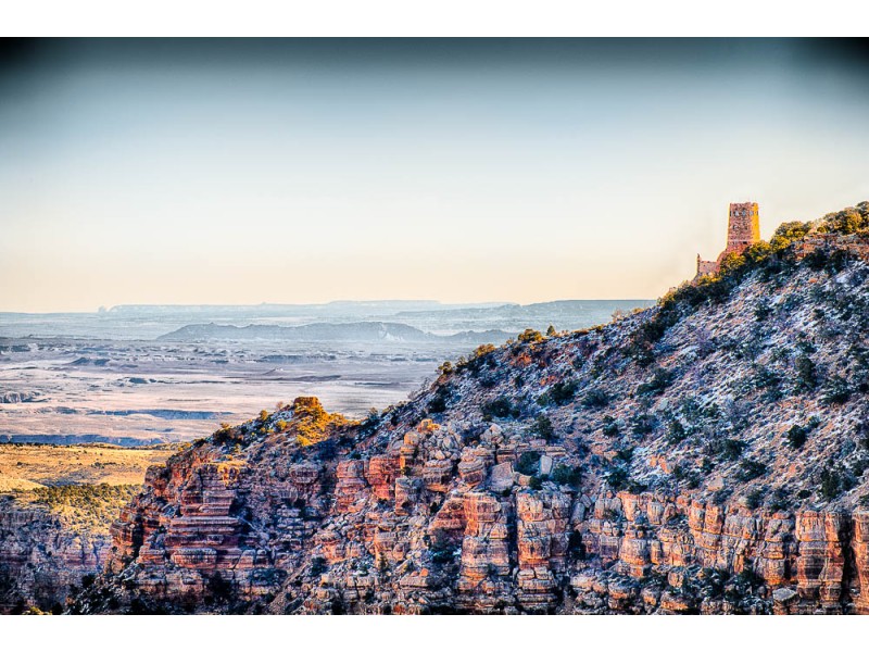 I took this image of the Watch Tower at the Grand Canyon during my Arizona road trip in February/March 2018. The tower was built in 1932 by Fred Harvey and the Santa Fe Railroad. Earlier towers - of which this tower is a model - were most likely used for protection and storage of food. Now, the watch tower serves as a rest stop and as an aid for helping the visitor to better understand the past and present life of the southwestern native Americans. The inside of the tower exhibits local art.