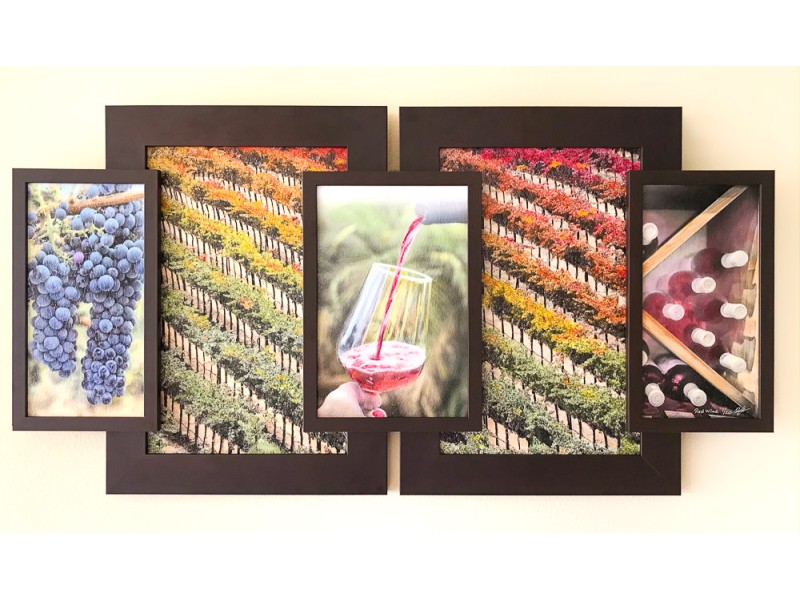 This piece is a compilation of photos from Paso Robles, CA (the two large back pieces), Temecula, CA (left and right) and Carlsbad, CA (center). I obtained the Paso Robles photos when I drove from San Francisco back to Carlsbad with my daughter in the summer of 2019. The Temecula photos were taken during a weekend-getaway with my wife, to celebrate our 12-year wedding anniversary in October 2019. And the center photo is my wife pouring red wine in our backyard to complete the piece.