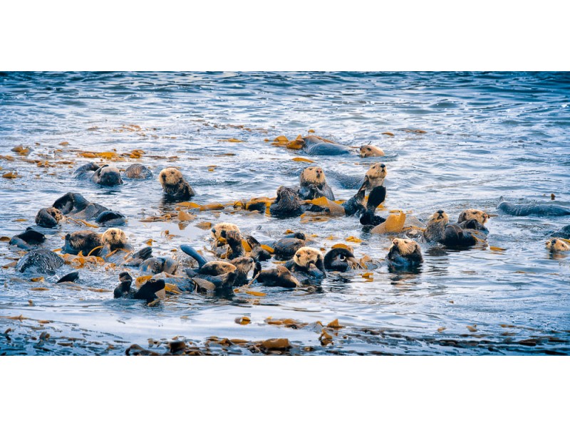 This image of a whole bunch of sea otters (called a raft of sea otters) in Morro Bay is available in an open edition at 16x8 inches and smaller and in 6 size-limited editions: 18x9 inches (total of 40), 24x12 inches (total of 30), 36x12 inches (total of 20), 48x24 inches (total of 18), 60x30 inches (total of 15) and in 10 arbitrary sizes. When ordered framed, it will have a barnwood frame. If you prefer other options than the ones listed here (for example as a gallery wrap on canvas) please let me know by phone or email. Also please contact me if you're interested in the larger versions (48x24" and up).