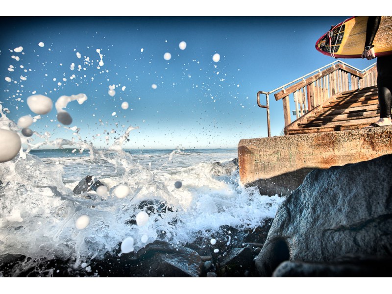 This image of waves crashing into the stairs near lifeguard tower 27 is available in an open edition at 12x8 inches and smaller and in 6 size-limited editions: 18x12 inches (total of 40), 24x16 inches (total of 30), 36x24 inches (total of 20), 45x30 inches (total of 18), 60x40 inches (total of 15) and in 10 arbitrary sizes. When ordered framed, it will have a barnwood frame. If you prefer other options than the ones listed here (for example a black frame, a gallery wrap on canvas, etc) please let me know by phone or email. Please contact me if you're interested in the larger versions (45x30" and up).