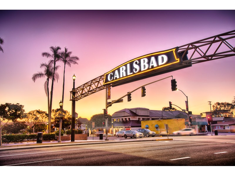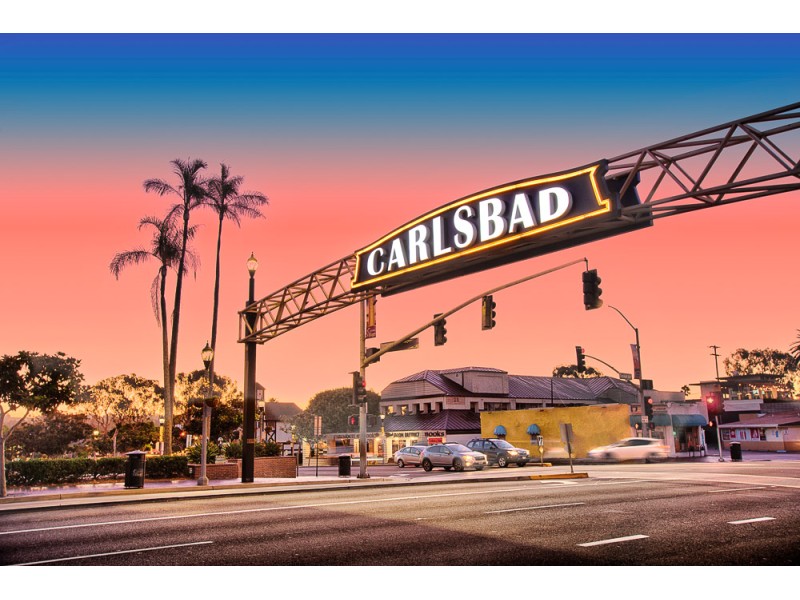 An early-morning shot of the Carlsbad sign in the Village of Carlsbad.