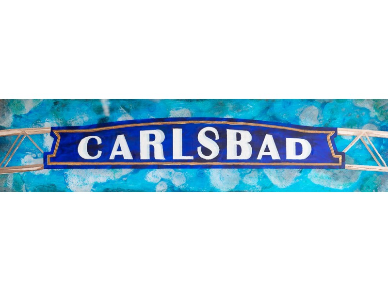 This is a representation of the Carlsbad sign. The original was painted on both sides of plexiglass: on the back I created an abstract sky with acrylics, alcohol and alcohol inks. On the front I painted the sign itself with acrylics and oils.