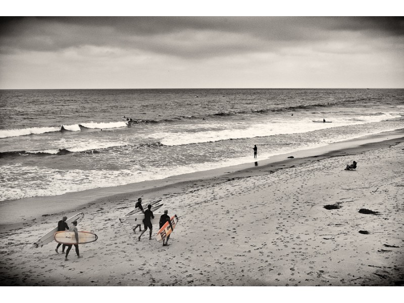 Tags: Pacific Ocean, beach, surfers, male, clouds, marine layer, fisherman