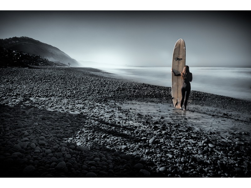 Tags: Pacific Ocean, beach, surfer, female, girl, Mount Soledad, long board