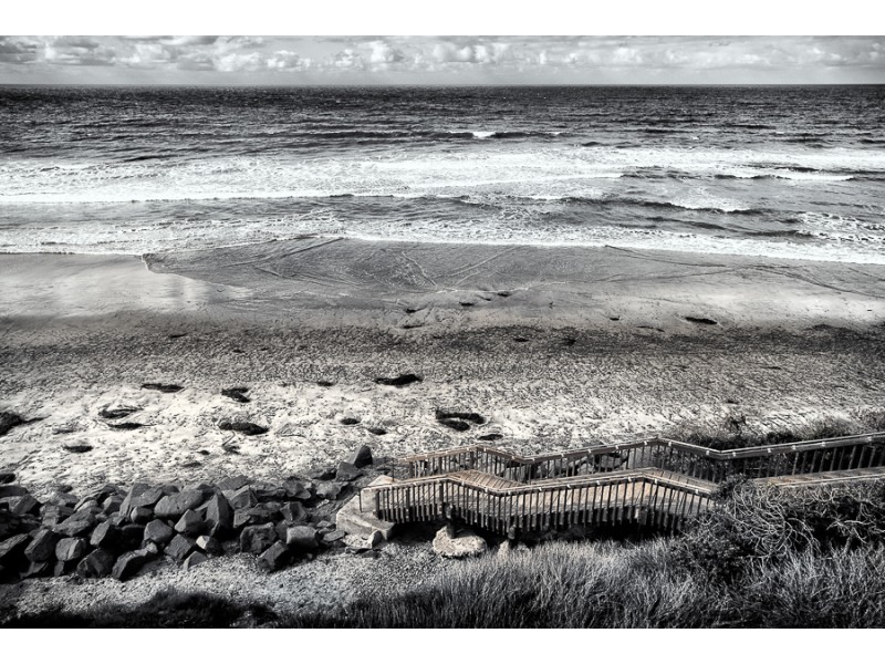 Tags: beach, Pacific Ocean, rocks, Ponto, wooden stairs, clouds, sand, kelp