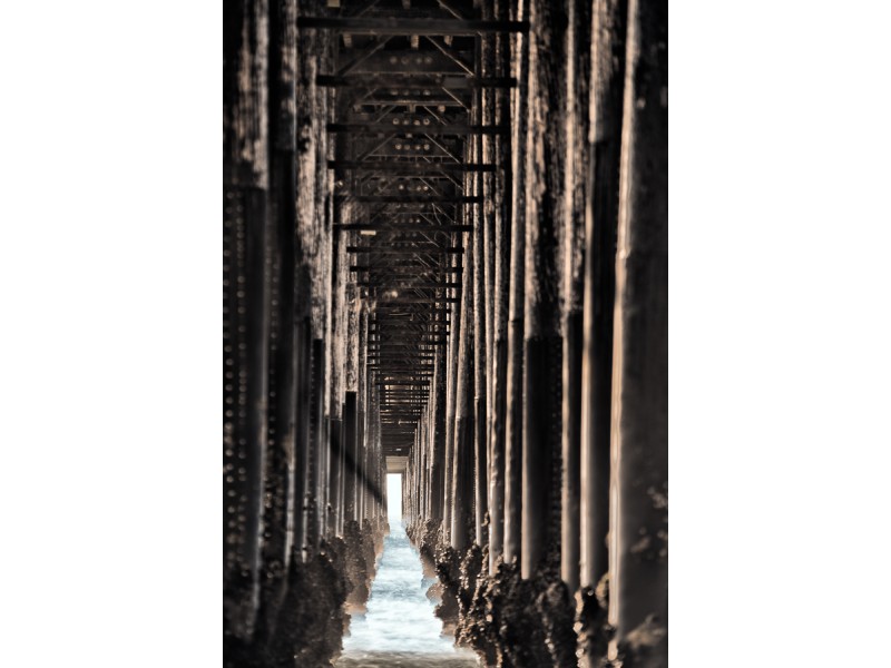 Taken at low tide, the Oceanside Pier shows even taller, almost giving the appearance of a classic cathedral.