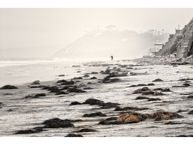 Tags: Pacific Ocean, beach, lifeguard tower 18, wooden stairs, kelp